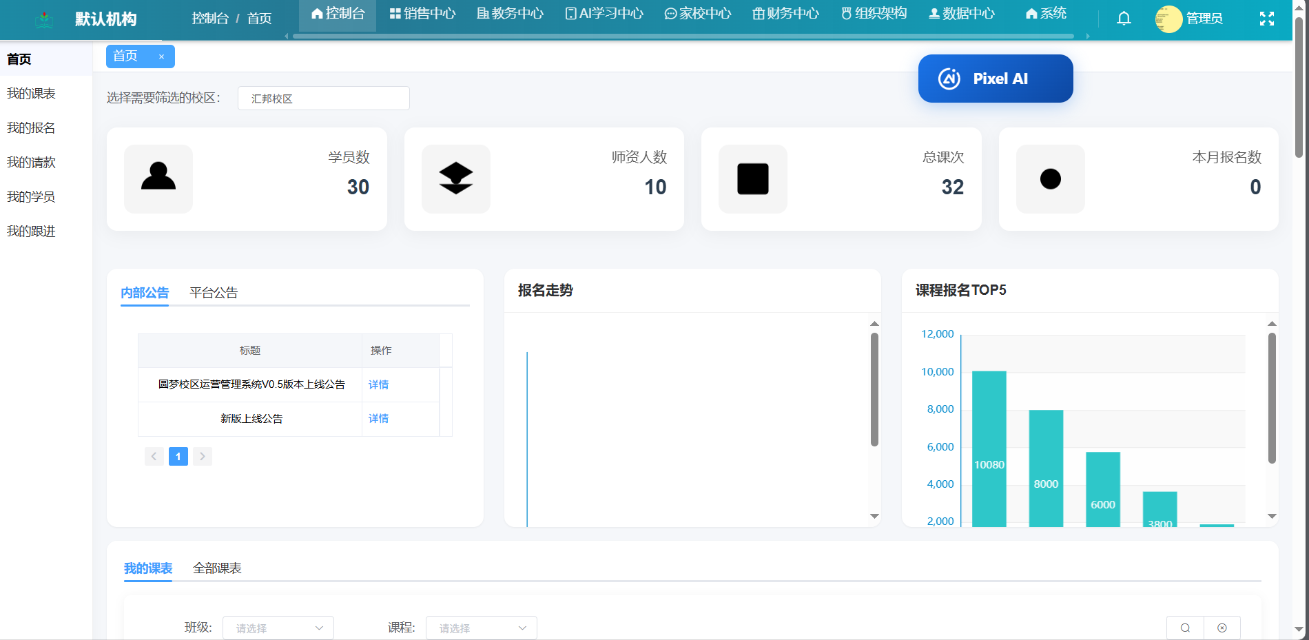 教培机构校区管理系统是专门为教育培训行业设计的信息化管理系统,旨在帮助机构实现数字化转型升级和精细化运营管理。这类系统通常采用"总部-校区"双系统架构设计,能够有效解决多校区管理中的管控失衡、数据割裂和模式混杂三大难题。通过集中化与分布式控制相结合的方式,系统既保证了总部对关键数据的宏观监控能力,又给予了各校区充分的运营灵活性,支持直营、加盟、合作办学等多种混合经营模式的自适应运作。