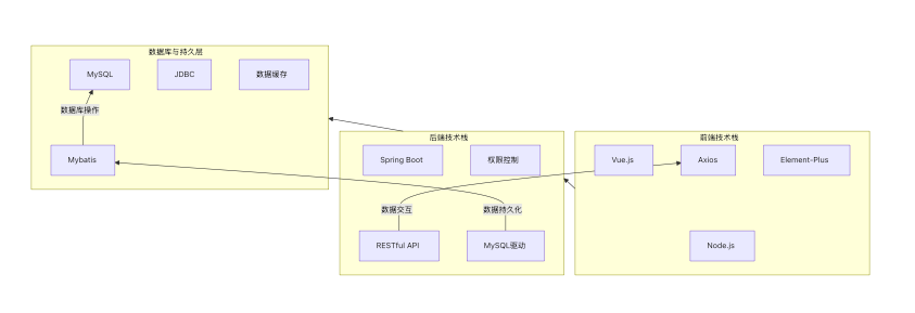 系统技术架构:用Mermaid图表呈现前后端分离的技术栈组成。