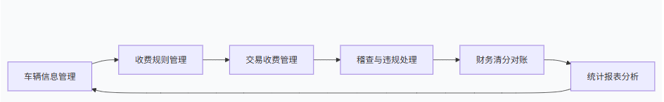 交通收费管理系统由六大核心功能模块组成,各模块既相对独立又高度协同,共同支撑交通收费业务的完整闭环:![]()